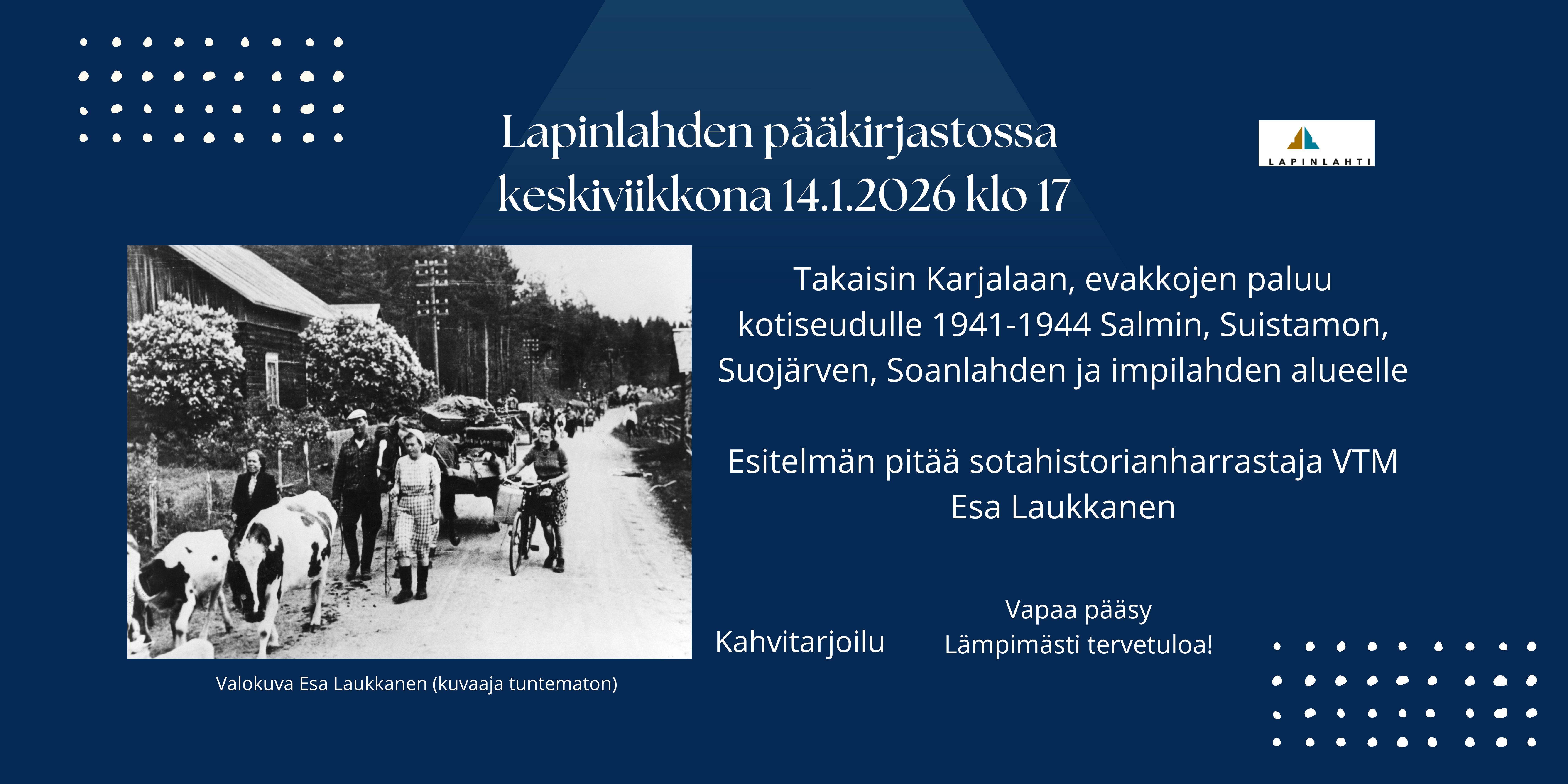 Esa Laukkasen luento Takaisin Karjalaan Lapinlahden pääkirjastossa