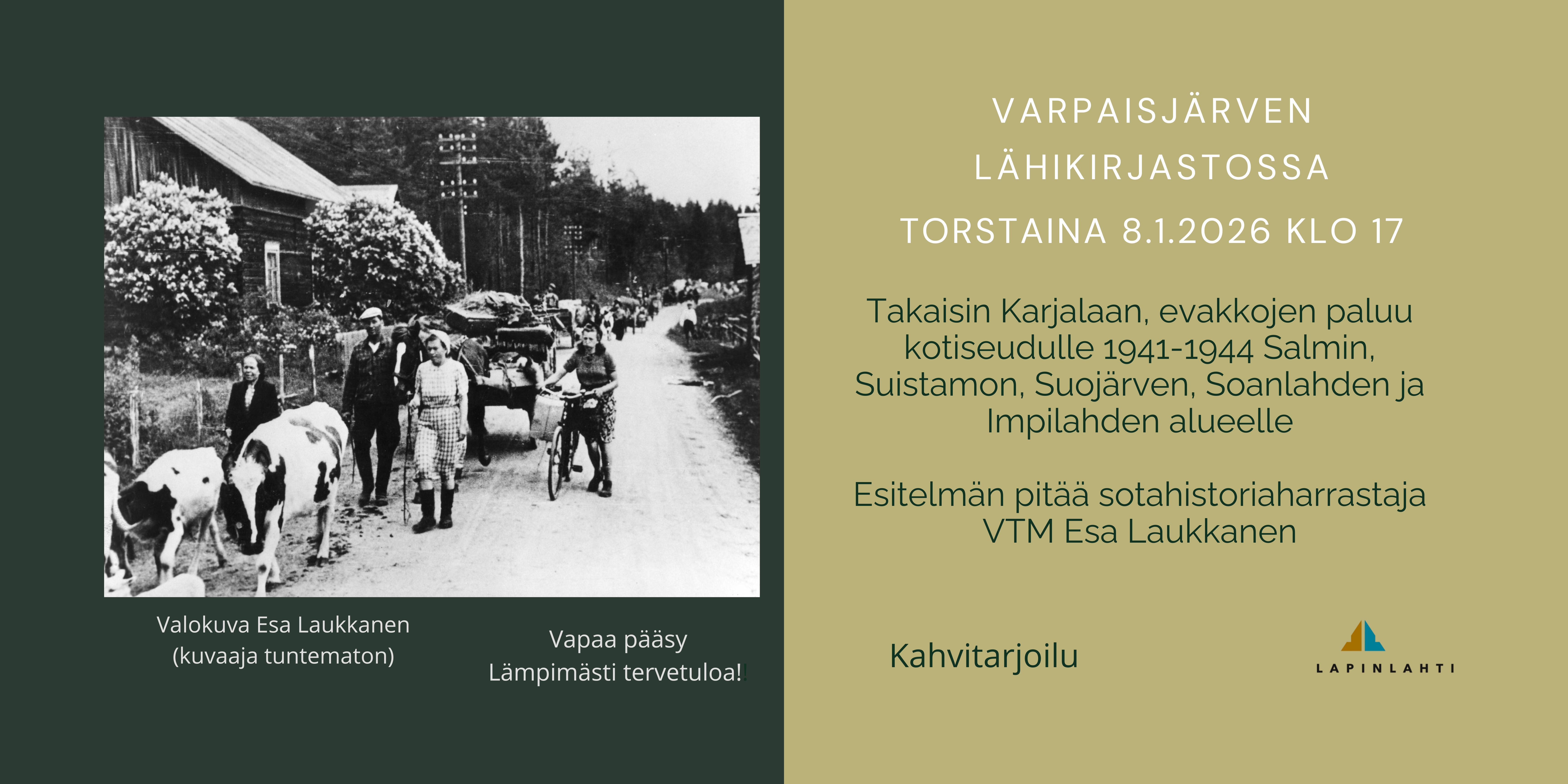Esa Laukkasen luento Takaisin Karjalaan Varpaisjärven lähikirjastossa