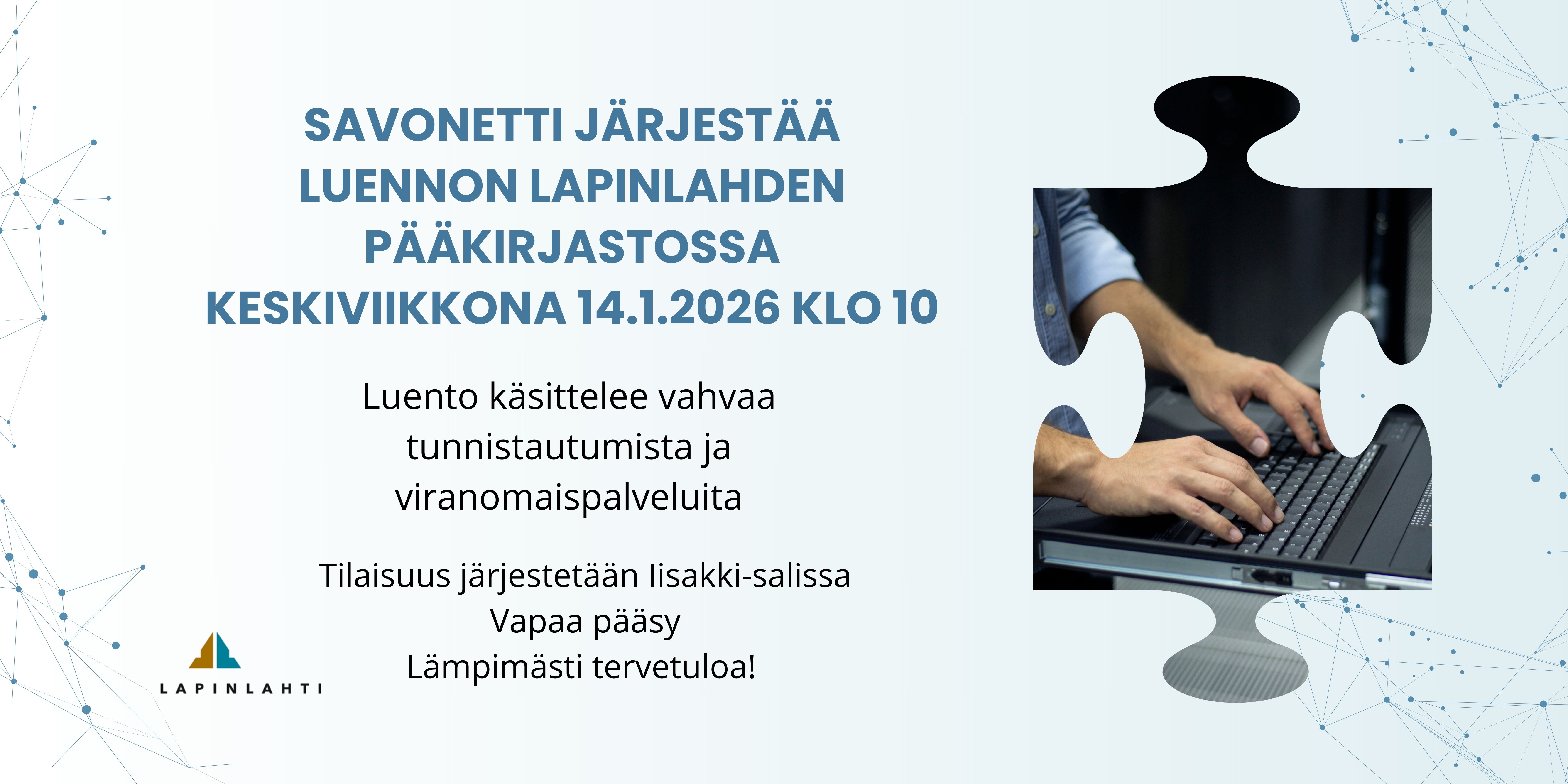 Savonetti järjestää luennon vahvasta tunnistautumisesta ja viranomaispalveluista Lapinlahden pääkirjastossa