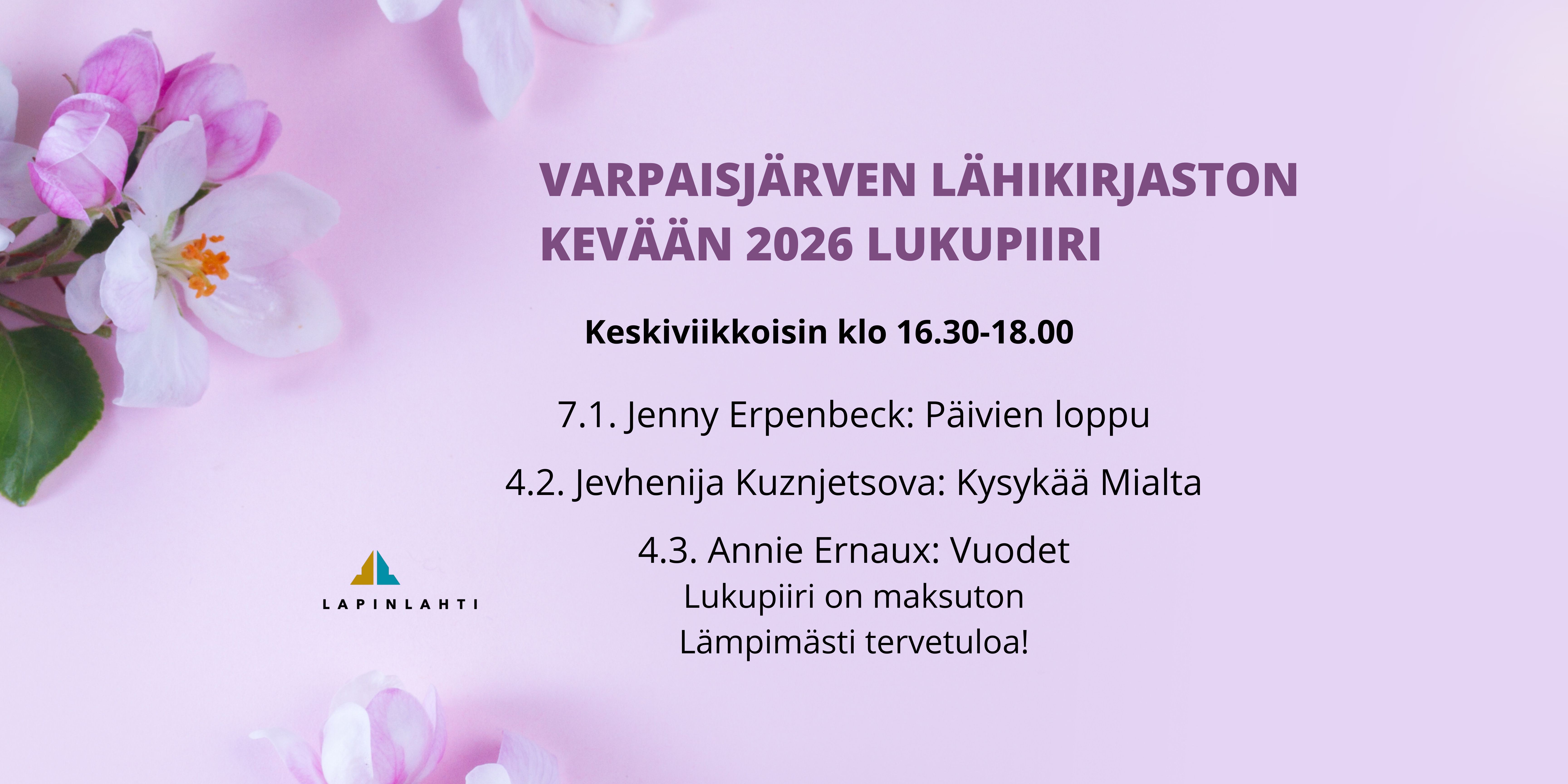Lapinlahden pääkirjaston kevään 2026 lukupiiri