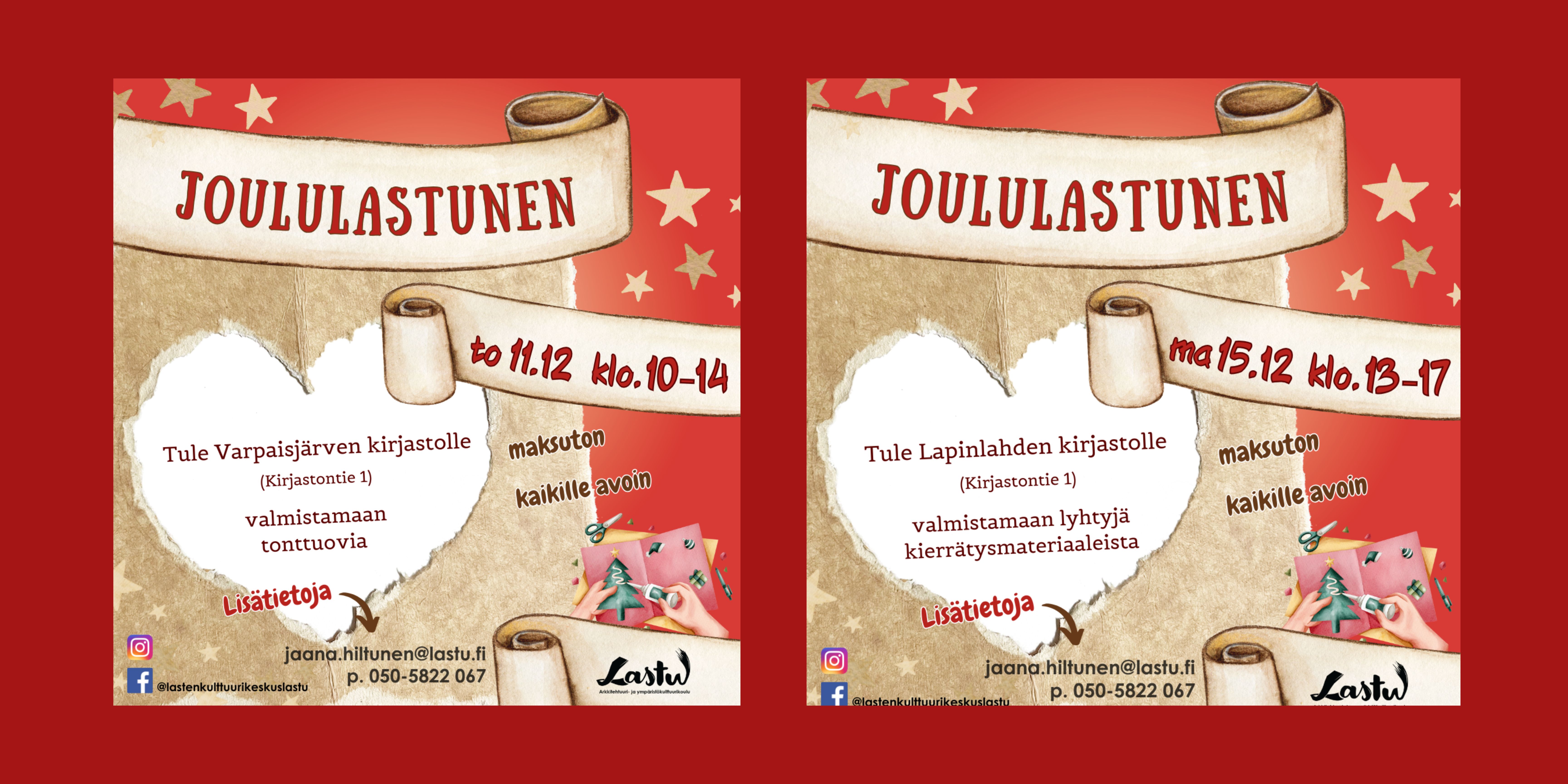 Joululastunen Varpaisjärven lähikirjastossa ja Lapinlahden pääkirjastossa