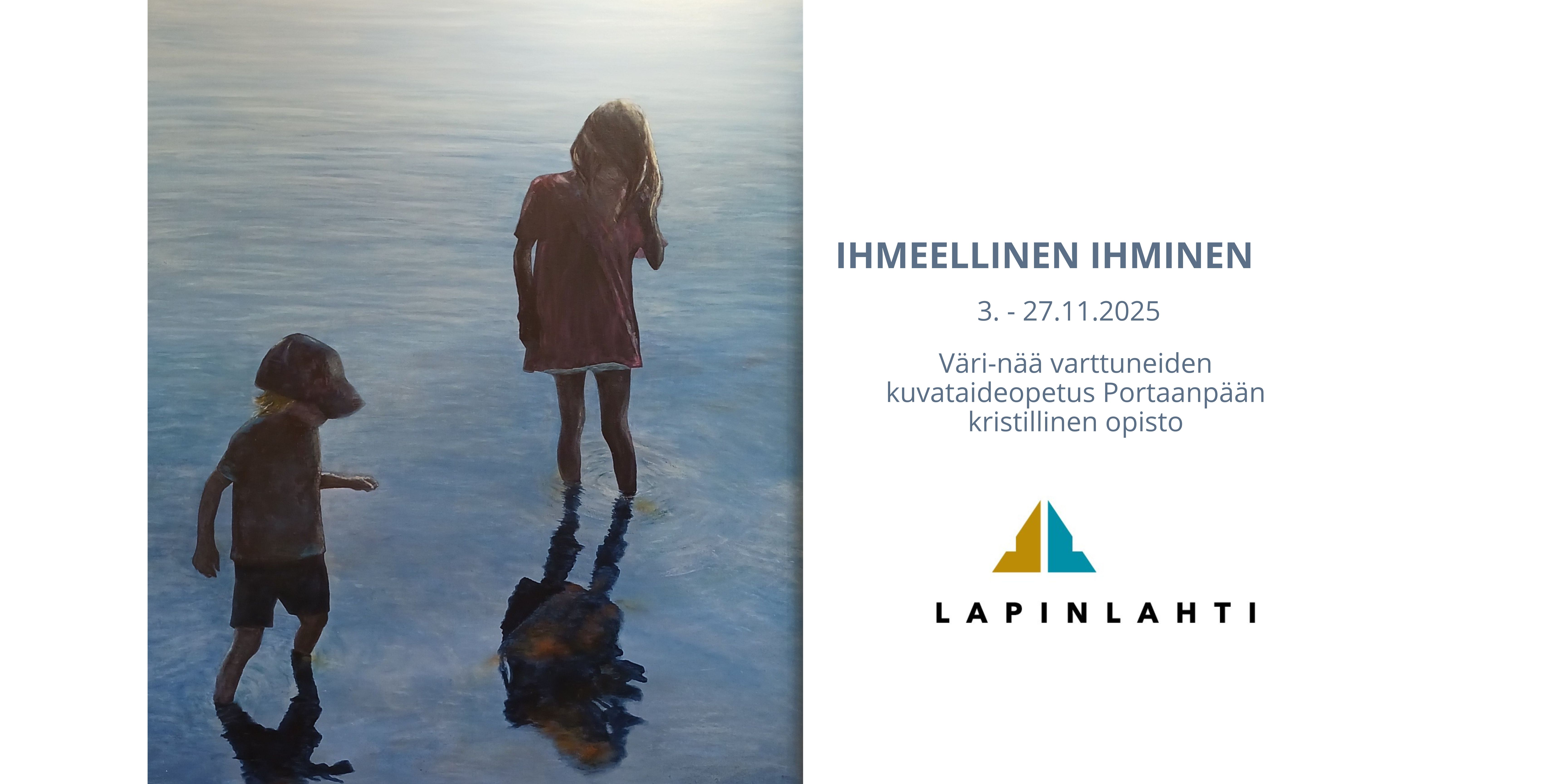 Lapinlahden pääkirjaston näyttelytila Aniarassa Portaanpään kristillisen opiston Väri-nää varttuneiden kuvataideopetuksen näyttely Ihmeellinen ihminen 3.-27.11.2025.