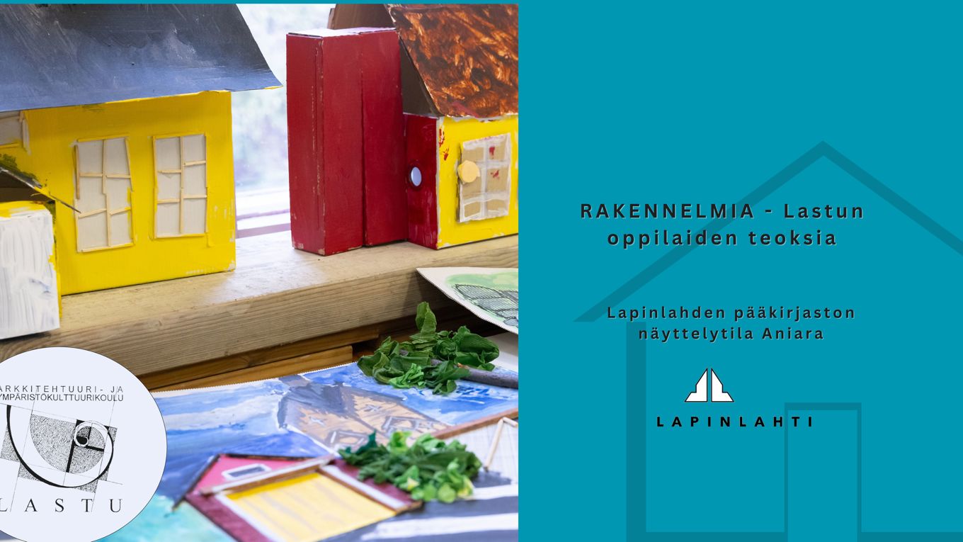 Lapinlahden pääkirjaston näyttelytila Aniarassa Rakennelmia - Lastun oppilaiden teoksia 4.8.-25.9.2025. Näyttely on avoinna henkilökunnan palveluaikoina.