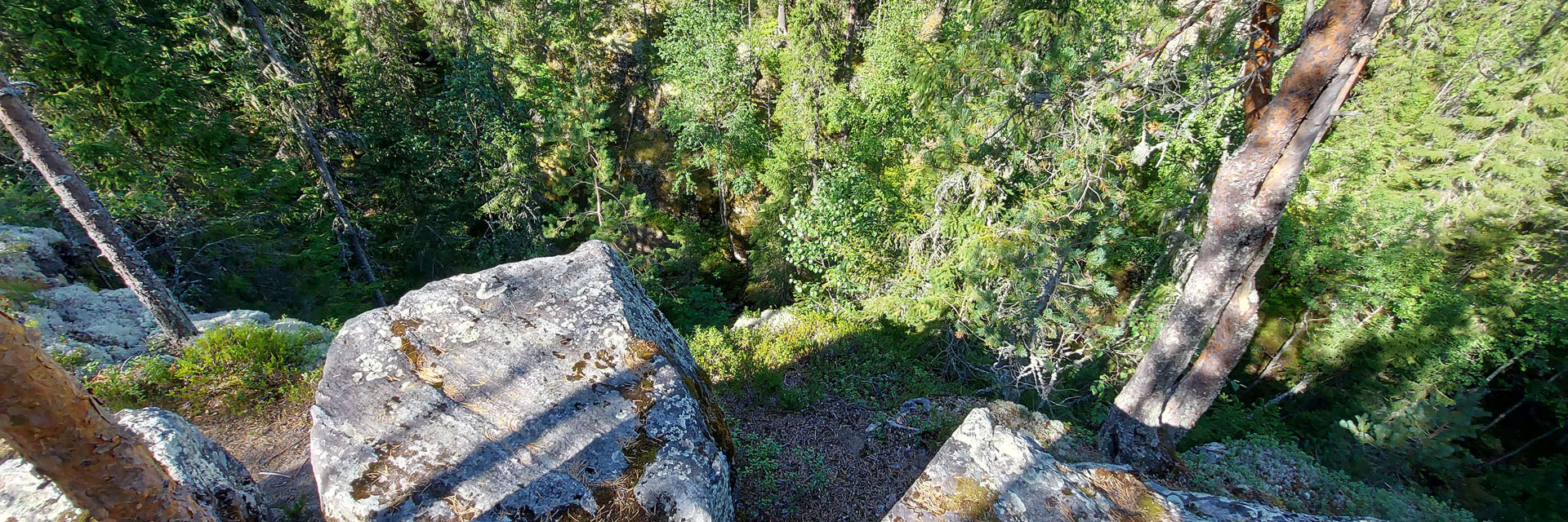 Helvetinkattila on noin 600 m pitkä ruhjelaakso, jonka päässä on noin 15 metriä syvä ja 20 metriä leveä louhikkoinen rotko. Pystysuorien seinämien äärellä, rotkon pohjalla ihminen tuntee itsensä pieneksi ja aurinkoisenakin päivänä hämärän rauhallinen tunnelma kietoo kulkijan syleilyynsä.